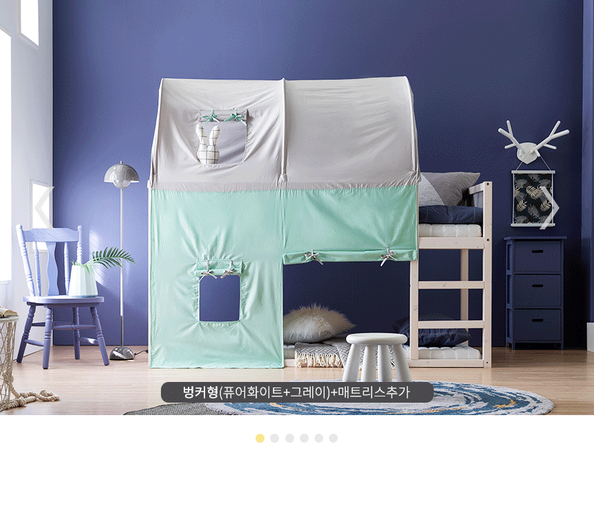 상품평 8 : 아늑하고 포근해서 7살 딸애가 좋아해요 인형놀이 할때도 침대안에서 놀구 친구들와도 자랑하고, 이쁜침대 덕분에 잠자리독립 성공입니다^^ 찜질방 토굴 좋아하는아이 침대로 딱이에용~ 아직 뒤집어서 벙커로는 안써봤는데 캐노피가 지겨워지면 바꿔볼 생각입니다(구매시에 배송 기사님께서 친절하게 조립해주시네요) 매트리스는 두께감이 적지만 애들 잠자리용으로는 무난합니다 일반 슈퍼싱글보다는 폭이 조금 작아요 우리애가 잠버릇이 있어서 별도로 침대가드 구매해서 달았습니다 침대 아래에는 수납용으로 사용가능합니다 매트리스 받치는곳은 큰 합판은 아니고 가로합판 여러개가 연결된 족자 형태네요 제가 80킬로인데 누워봤더니 다행이 견고한것 같습니다 참고하세요