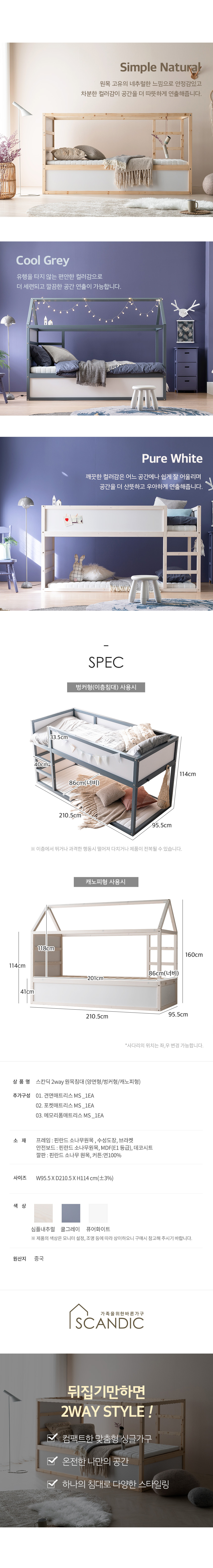 4월 15%혜택 최대5만원+레이디가구 스칸딕 데일리 원목 이층침대 (양면침대/벙커침대/캐노피침대)다양하게 활용 가능한 스칸딕 원목침대!